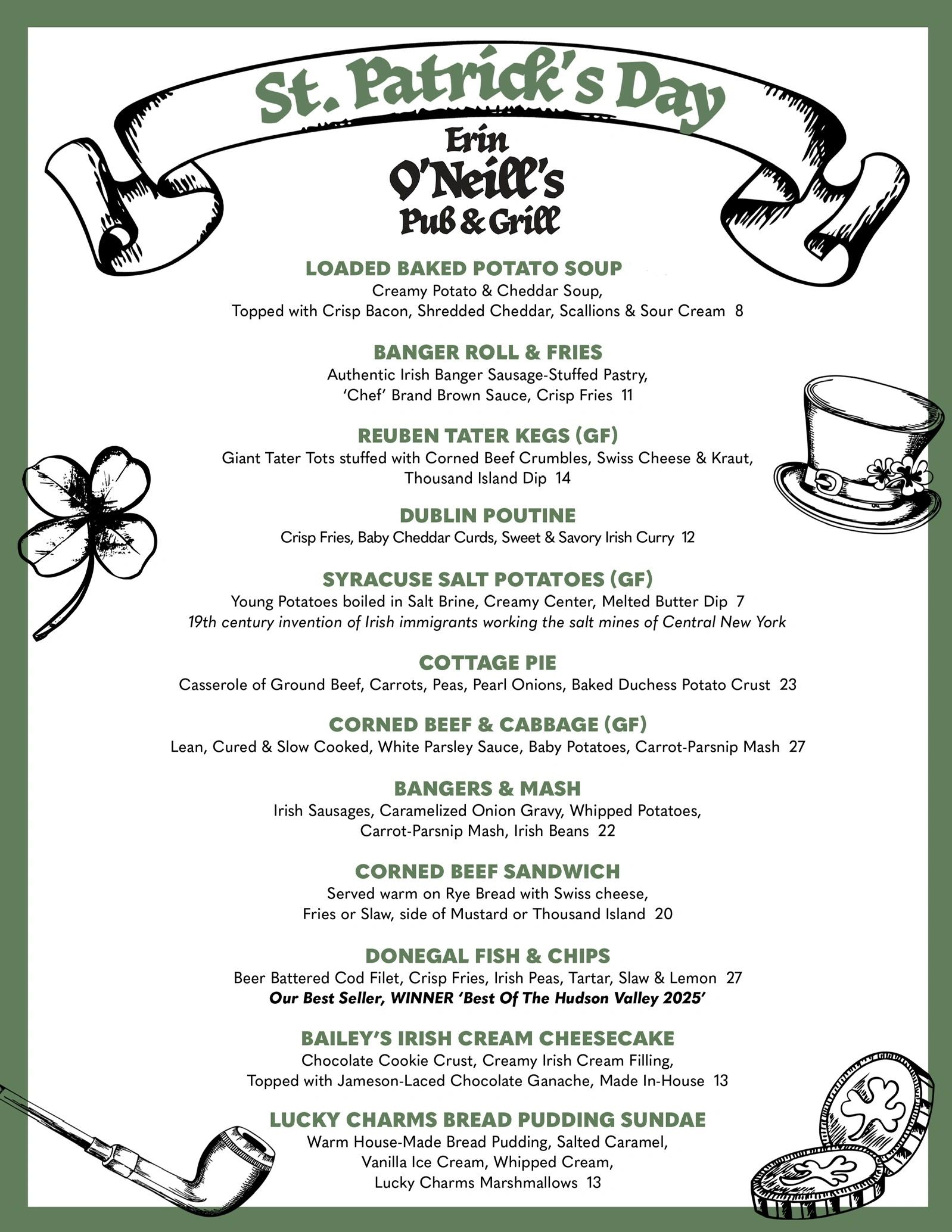 We are serving only this menu on St. Patrick’s Day.